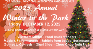 The Imperial Point Civic Association Announces Our Winter in the Park 2025 At Dottie Mancini Park Friday, December 12, 2025 5PM to 8PM BE A SPONSOR Welcome all Neighbors! Come join us and your Imperial Point neighbors for a festive holiday gathering! FUN for Everyone!!