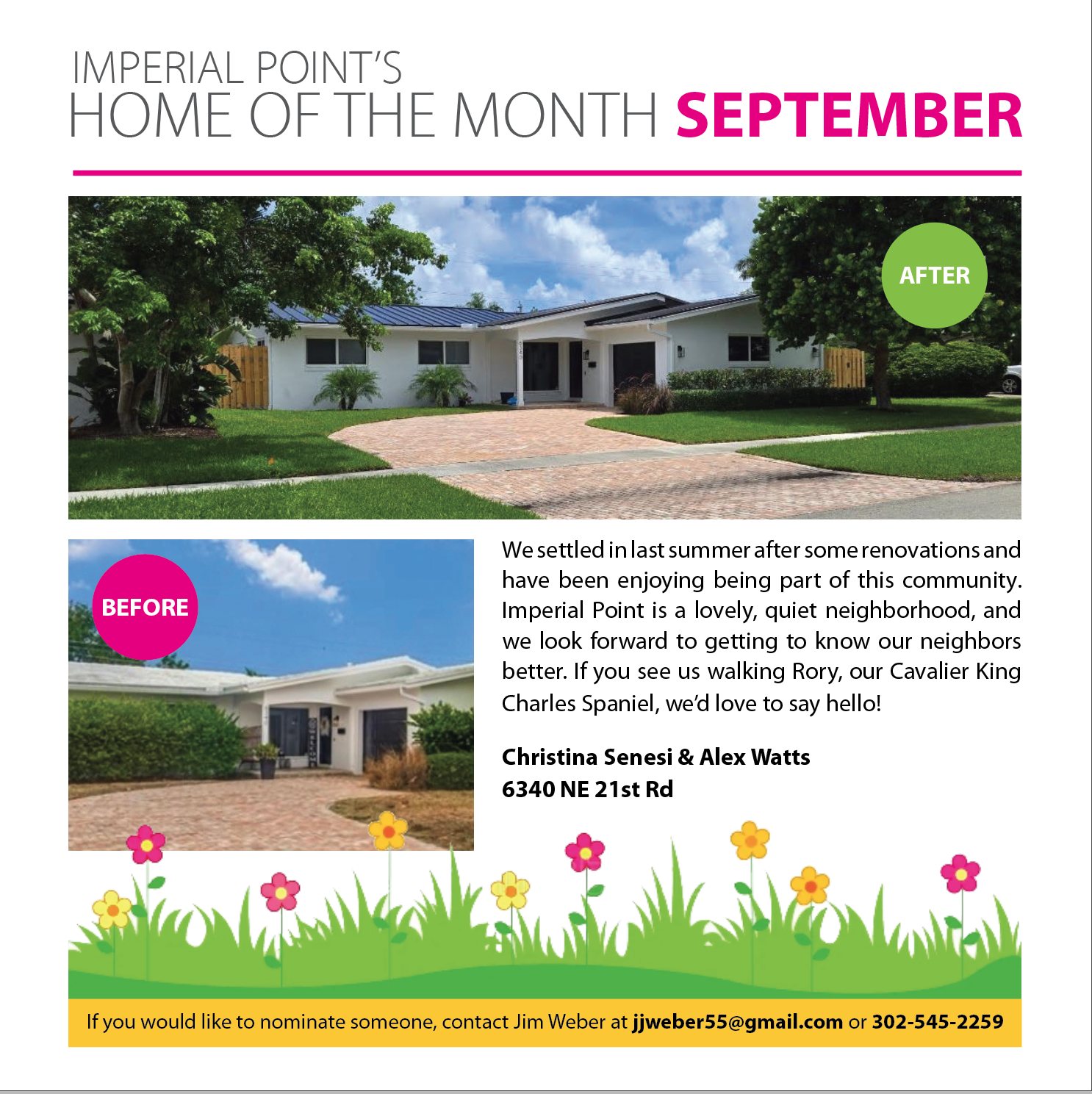 Congratulations! Imperial Point's September Home of the Month belongs to: Christina Senesi & Alex Watts If you would like to nominate someone, contact Jim Weber at jjweber55@gmail.com or 302-545-2259